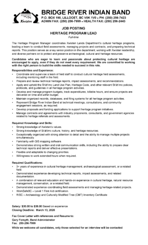 Heritage Program Lead Job Description:Job Posting – Heritage-Program-Lead-Job-Posting-Final – Deadline 2026 Mar 13 Closing date: March 13, 2026 Back to jobs